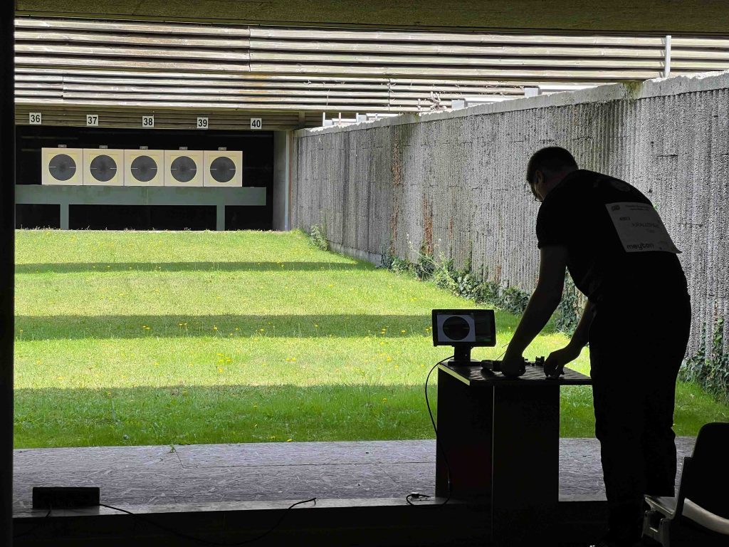 Als nächstes stand die Disziplin Schnellfeuerpistole auf dem Programm, hier wurde die Hälfte am Sonntag und die zweite Hälfte am Montag absolviert. Bei der Schnellfeuerpistole werden jeweils 5 Schuss Kleinkaliber in 8 Sekunden, in 6 Sekunden und schließlich in 4 Sekunden abgefeuert. Das ist so verdammt schnell, dass man keine Zeit zu verlieren hat. Die Serien liefen gut bis zur ersten 4er Serie als Tim ein Schuss vor lauter Nervosität schon zu früh abgab. Das kostete ihn leider mindestens 10 Ringe, die holt man nicht einfach so auf, das Ergebnis des ersten Tages war dann 260 Ringe, nochmal sollte das nicht passieren. Am Tag darauf lief es mit einem Ergebnis von 275 Ringen deutlich besser. Mit insgesamt 535 Ringen belegte Tim hier den 9. Platz. Keine Frage, es hätte auch etwas mehr sein können.